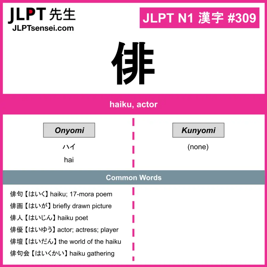309 俳 kanji meaning JLPT N1 Kanji Flashcard