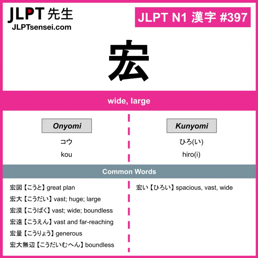 397 宏 kanji meaning JLPT N1 Kanji Flashcard