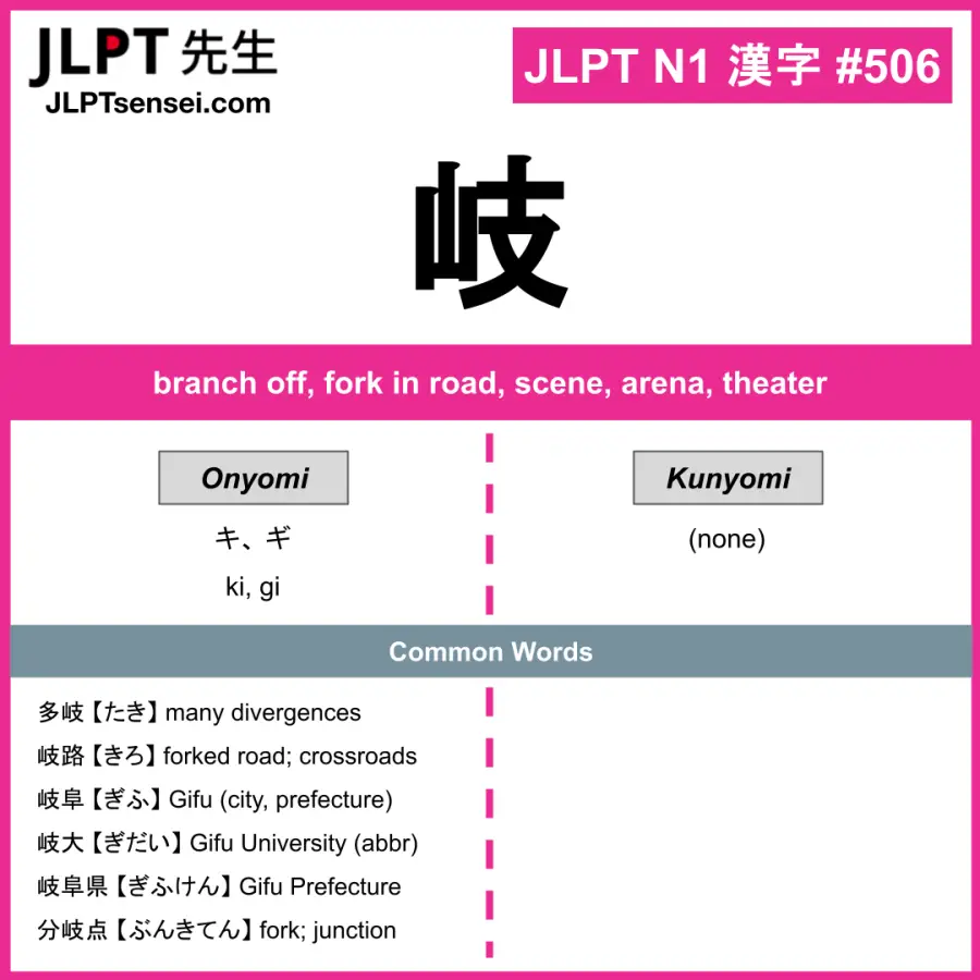 Learn Japanese kanji: 岐 【 キ、 ギ 】.