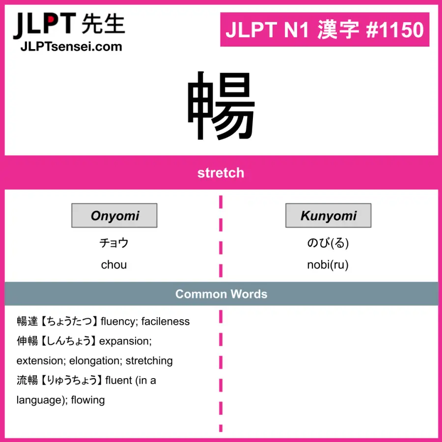1150 暢 kanji meaning JLPT N1 Kanji Flashcard