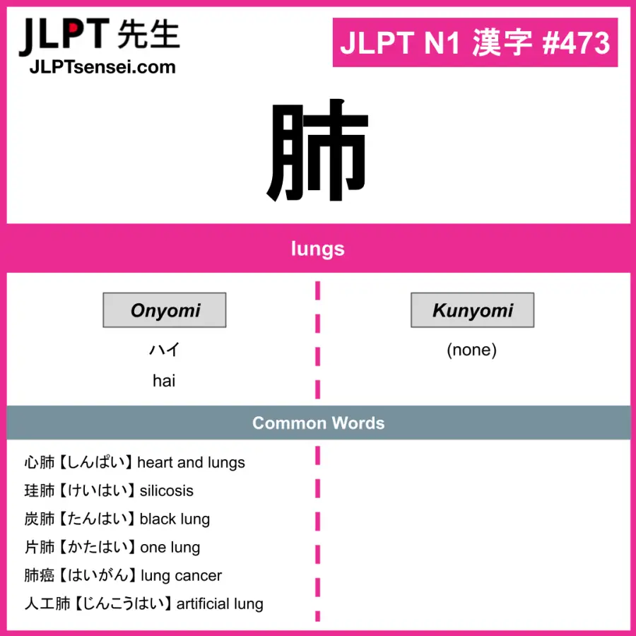473 肺 kanji meaning JLPT N1 Kanji Flashcard