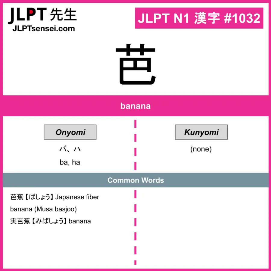 Learn Japanese kanji: 芭 【 バ、 ハ 】.