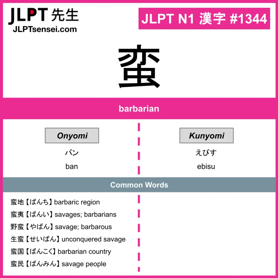 Learn Japanese kanji: 蛮 【 バン / えびす 】.
